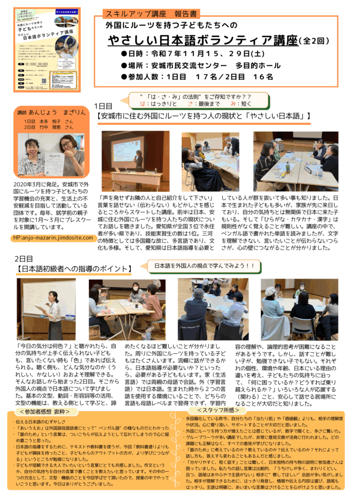 【活動報告】外国にルーツを持つ子どもたちへの やさしい 日本語ボランティア講座