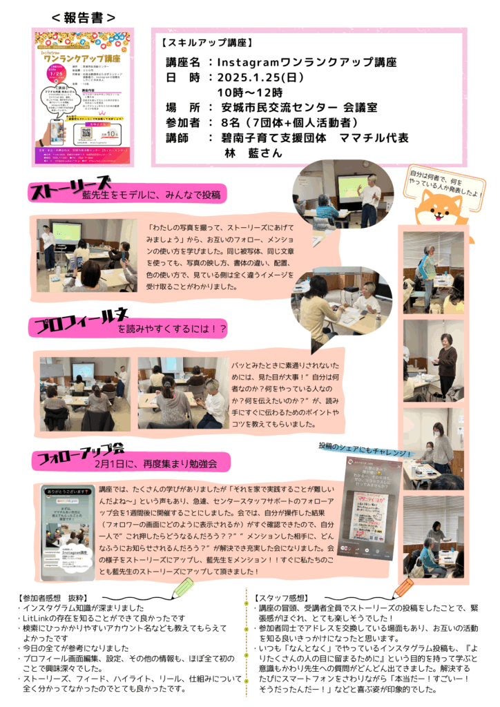 【活動報告】Instagramワンランクアップ講座